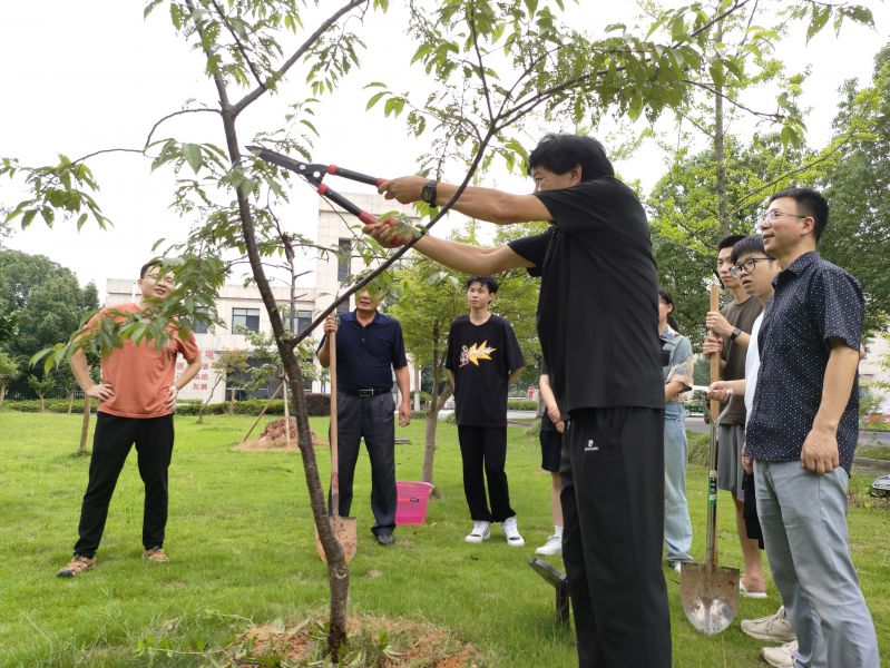 随后,在老师的指导下,同志们干劲十足、挥锹铲土、中耕除草、苗木修剪、提水浇灌,大家分工协作,密切配合下,活动各个环节井然有序。