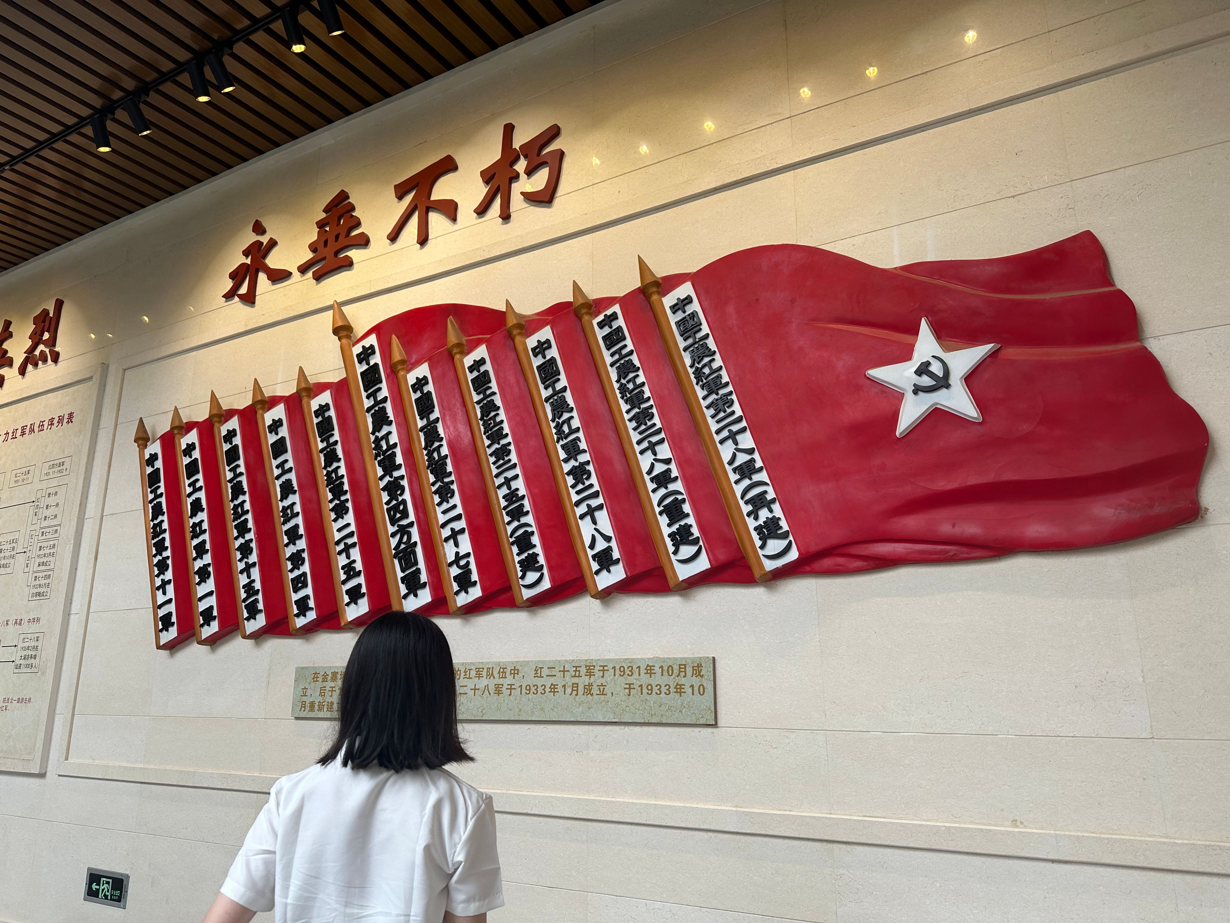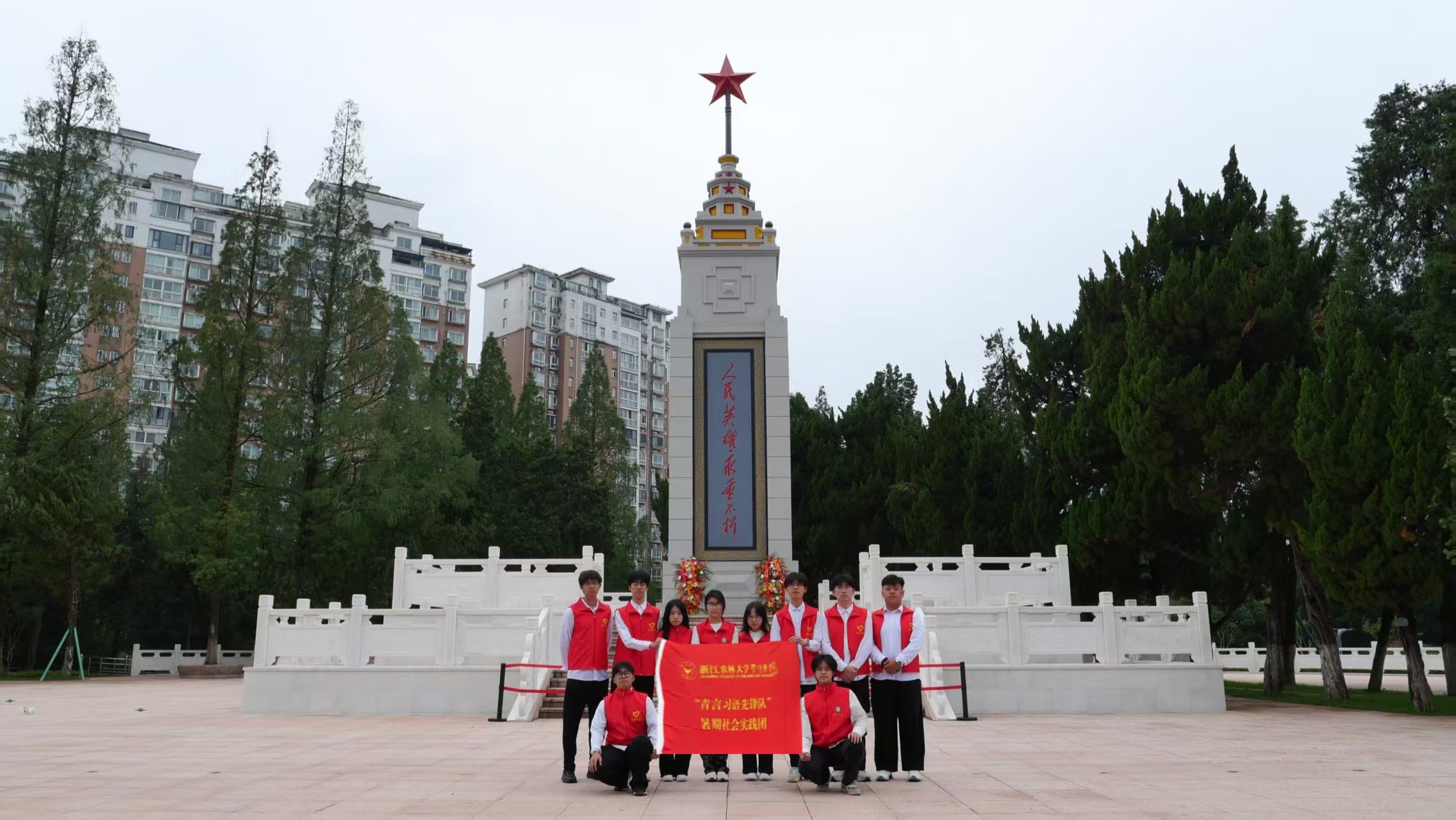 为深入学习贯彻习近平新时代中国特色社会主义思想,推动理论学习与实践体验深度融合,近日,浙江农林大学暨阳学院园林学院“青言习语先锋队”暑期社会实践团赴“红军摇篮、将军故乡”的安徽金寨红军广场,开启了一场“沉浸式”的新思想研学之旅。这场生动的“行走的思政课”,让青年学子在红色地标中感悟真理力量,在历史回响中坚定信仰方向。