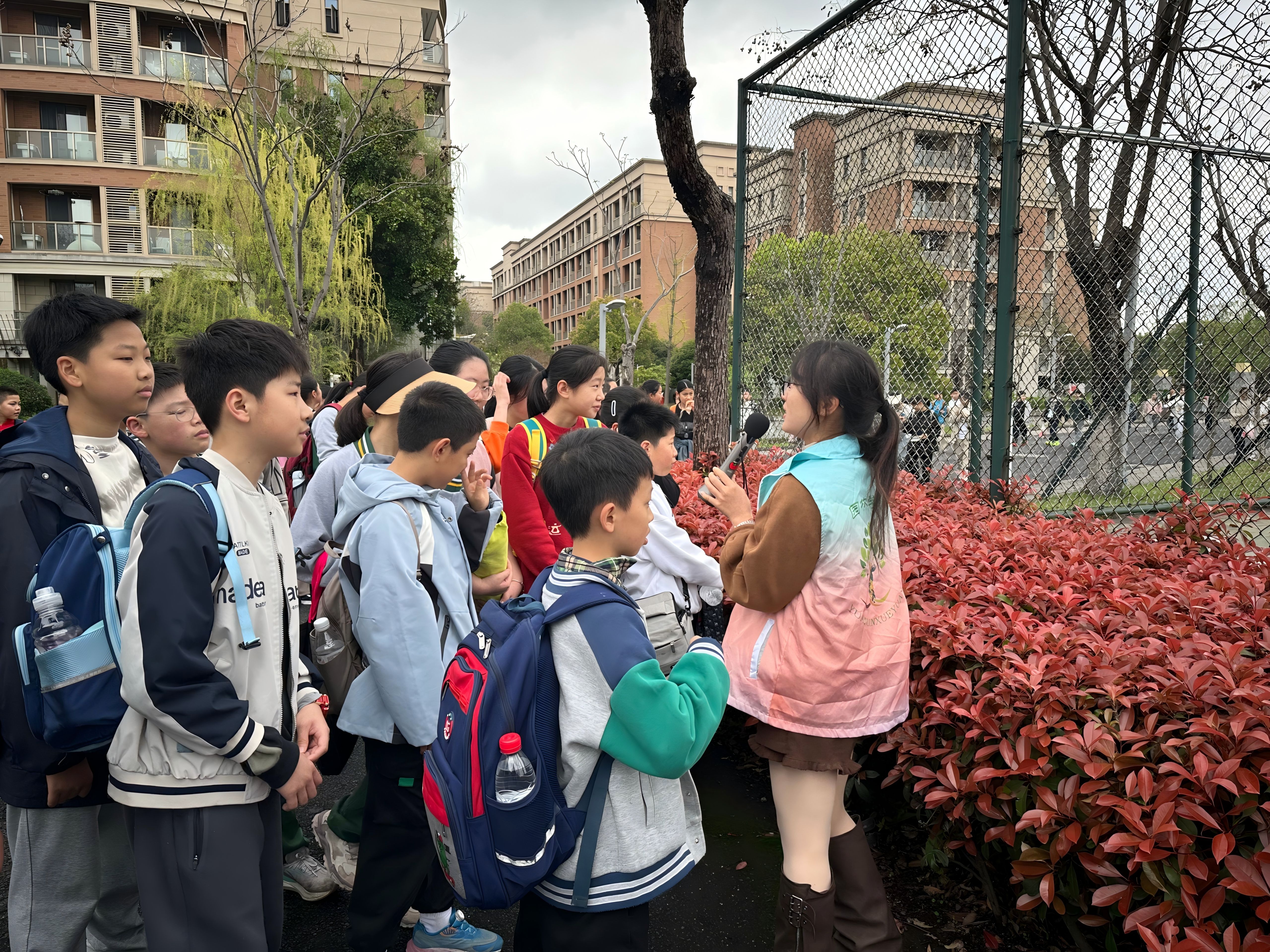 在园林学院的精心组织下,荷花小学师生沿校园植物景观带有序参观。志愿者们结合校园内丰富的乔木、花卉、草本植物资源,以生动通俗的语言详细讲解各类植物的名称、生长习性、观赏价值及生态功能,重点介绍了校园特色植物的养护要点与文化内涵。志愿者们还将植物知识与绿色发展、责任担当等思政元素巧妙融合,引导学生在观察叶片形态、花朵结构中感受自然之美,在互动问答中深化对生态平衡、环境保护的理解。现场学习氛围浓厚,同学们在交流中增进友谊,在活动中共同成长。